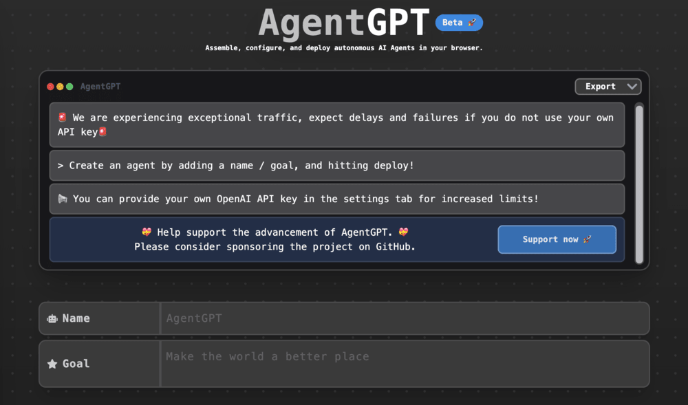 我目前在玩的是 AgentGPT