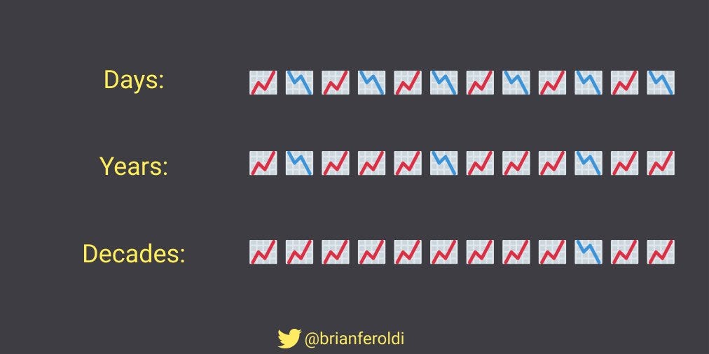 這週在 twitter 看到 @BrianFeroldi 關於投資的幾則推文,還附上視覺化的圖片,非常直覺好懂,比起落落長的投資文章易讀;我選了五個比較有意思的圖跟大家分享 (附上我的理解):